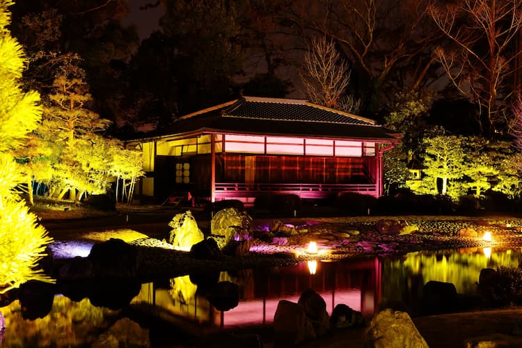 香雲亭的春之燈(はるのひ)則是在池塘中燈光和真正的櫻花一起展示香雲亭的影像,以呈現出春天的氣息。