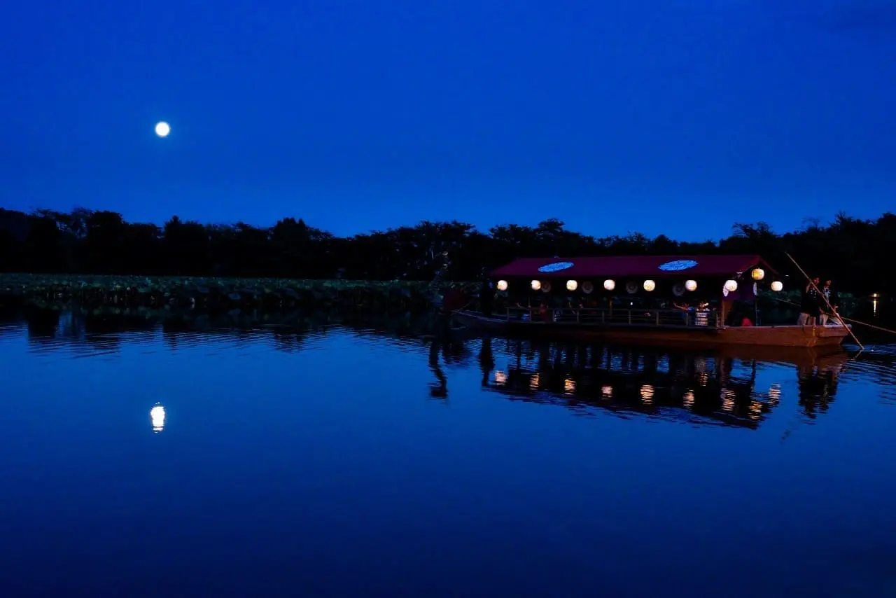 大澤池被譽為日本三大名月鑑賞地之一。在「觀月的夜晚」活動期間,池水中的月亮倒影與夜空中的明月交相輝映,營造出詩意的視覺效果。波光粼粼的水面,加上周圍靜謐的環境,讓人彷彿置身於古代貴族的優雅生活中。