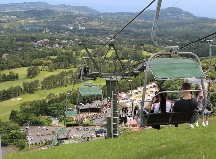 來到伊豆大室山,你可以從伊東站或伊豆高原站搭乘巴士前往。抵達後,你可以乘坐纜車直達火山口,這趟纜車之旅絕對讓你目不暇接地欣賞壯麗的全景!如果天氣晴朗,你還可以遠眺富士山和大島,景色美不勝收!