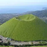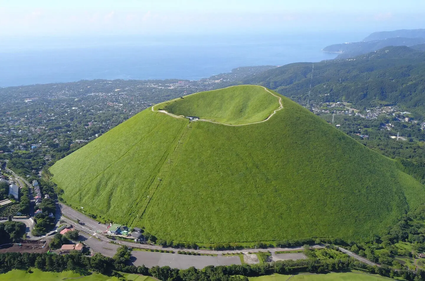 大室山是一座火山位於日本靜岡縣伊東市的伊豆東武火山田,海拔高度為580米,是一座煤渣錐火山。約4000年前由火山噴發形成的,它的山稜曲線優美,宛如一個倒扣的大碗。擁有綠茵茵的火山口,長的就像一杯抹茶一樣!