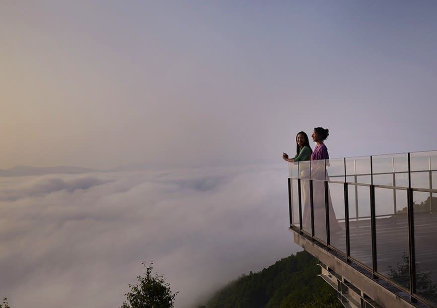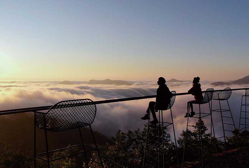 就像與雲海共酒般的吧檯式展望台。雲海翻騰的景象近在眼前。