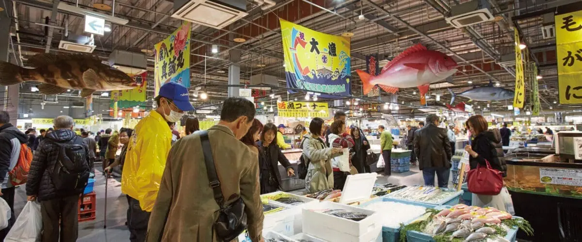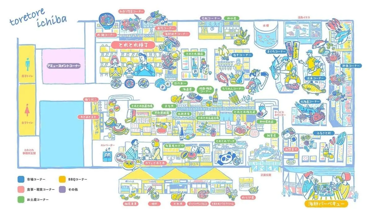 這裡是日本人喜愛的活魚刺身和各式貝類的天堂,而且還可以在門口享受燒烤。如果您有興趣在門口BBQ,請先在BBQ的櫃檯購買門票並選好座位,然後進入市場選購烤食材。您可以享受90分鐘的自助燒烤體驗,並享受免費飲料。