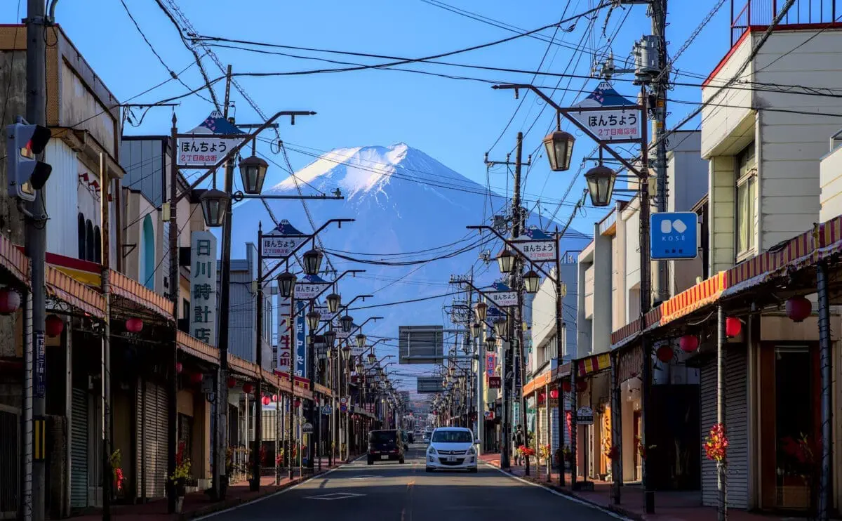 附近的 日川時計店(Hikawa Clock Shop) 更是許多攝影愛好者的必訪地標。街道的復古燈籠、招牌和富士山背景,拍起來非常有日本街景氛圍。