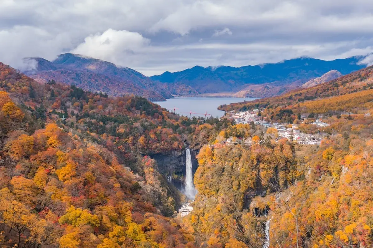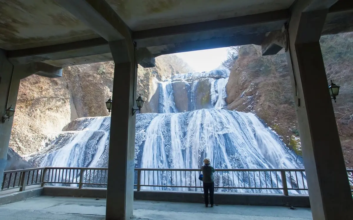 從中禪寺湖傾瀉而下的華嚴瀑布高達97公尺,落水形成強大水霧,是北關東最知名的自然地標。冬季結冰後的景象宛如藍色幻想,俗稱「12冰瀑」,如夢似幻。