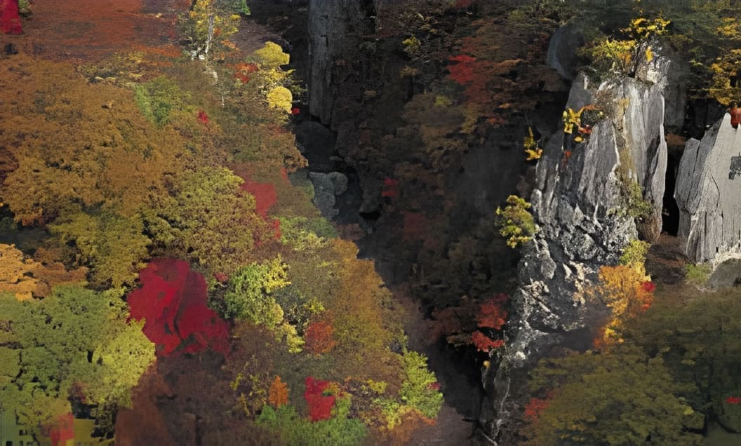 這是一個因其鮮艷的秋色而聞名的絕美峽谷。峽谷四周是陡峭的懸崖,從觀景台上俯瞰,整個峽谷都被五彩的楓葉所覆蓋,景色令人屏息。最佳賞楓時間是10月中旬到下旬。