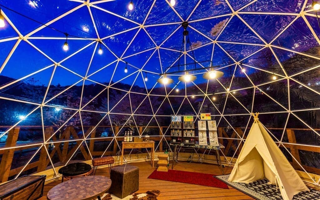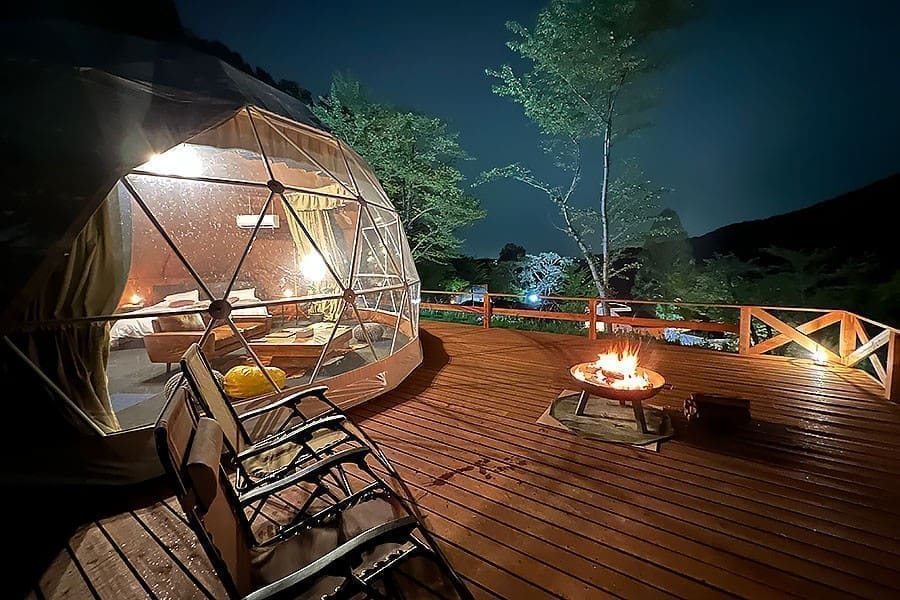 這個露營區內有3種不同的住宿類型,共15棟獨立住宿。每一棟獨棟皆為相連的2個空間,包括寢室、衛浴、用餐區等一應俱全。此外,每一棟獨棟Villa都擁有獨立衛浴、桑拿房和星空帳,這些豪華設施是日本豪華露營區的常見魅力之一。最特別的是,住在Villa裡,您可以直接從星空帳欣賞美麗的茨城山景,感受日本自然美景的絕妙之處。