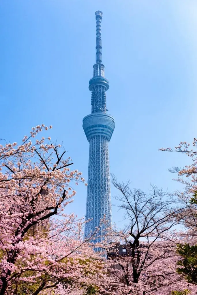 若想拍 晴空塔夜景 + 櫻花,晚上會更美、遊客也相對較少。