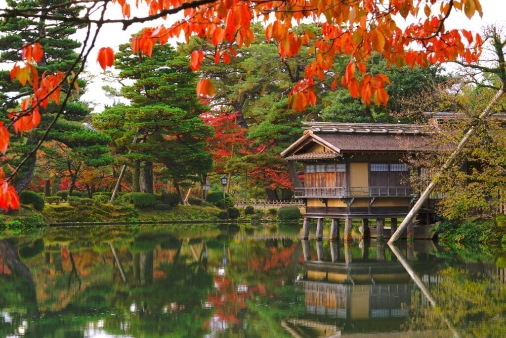世界文化遺產【金澤兼六園】因造景兼具【寬廣、幽隧、人力、蒼古、水泉與眺望】而得名。不同於日本庭園常見的枯山水風格,兼六園的人造溪流則是充滿著水泉的活力,環繞著整個園區,漫步園中可以深刻感受到林泉迴遊式庭園的意境。