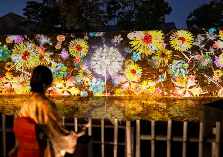 最後,台所前庭的NAKEDつくばい®和夜桜茶會都提供了一些獨特的體驗,前者是一種可以讓你在進入茶室前消毒手指的藝術形式,而後者則是在欣賞夜櫻的同時,可以品嚐茶和日本的傳統文化。在互動藝術中,你可以靠近圓窗,開啟障子來展示春天的和歌。此外,在夜間表演中,你可以欣賞到以日本傳統圖案為靈感的燈光和空間影像,一起構成一個讓你身處於360度櫻花之中的幻想世界。
