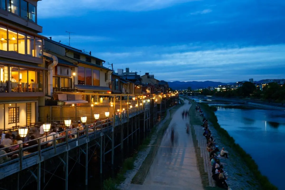 每年五月開始,從二條到五條之間,鴨川西岸將有超過90間店鋪沿河架起木製平台,設置納涼席。這可是已有超過400年歷史的京都夏季傳統,體現了京都人獨到的避暑美學!🌿