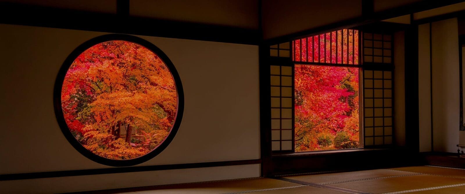 秋天時,透過窗戶望向庭園中燃紅的楓葉,更加襯托出人生與自然的對話之美。