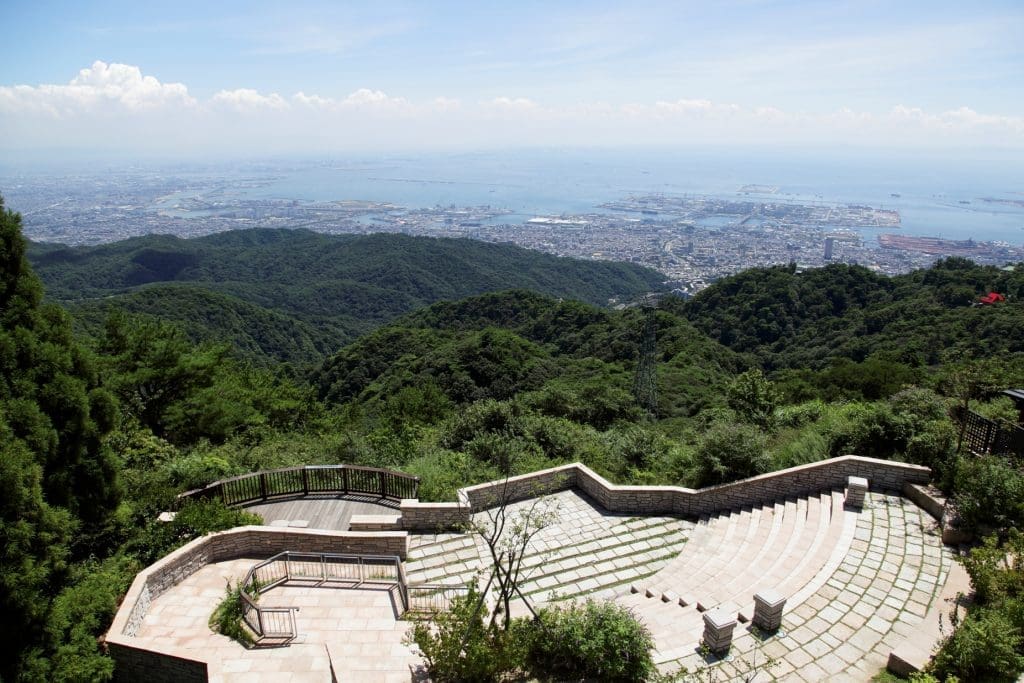 您好!歡迎來到六甲山,今天我們要介紹的是六甲山最美的景點之一,「自然體感展望台 六甲枝垂」。景觀令人嘆為觀止,您可以看到六甲群山、瀨戶內海和市區的景色。我們還特別推薦您坐在階梯露台上放鬆一下,感受大自然的美妙。