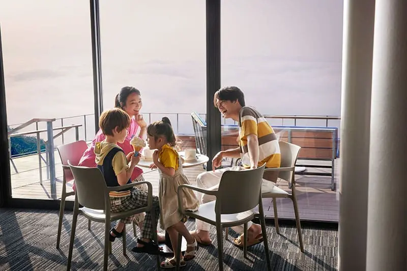 除了觀景台,這裡還設有一個天空咖啡廳,讓你可以在品嚐美味咖啡的同時欣賞景色。而且他們還提供著可愛的雲朵主題甜點,這是一個絕佳的機會來滿足你的味蕾,享受美食的同時,欣賞美景。