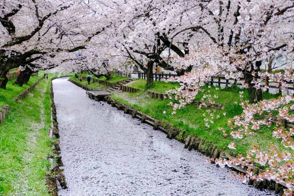 冰川神社後方的 新河岸川,在櫻花季會開放期間限定的櫻花舟遊,是川越最受歡迎的春季體驗之一。