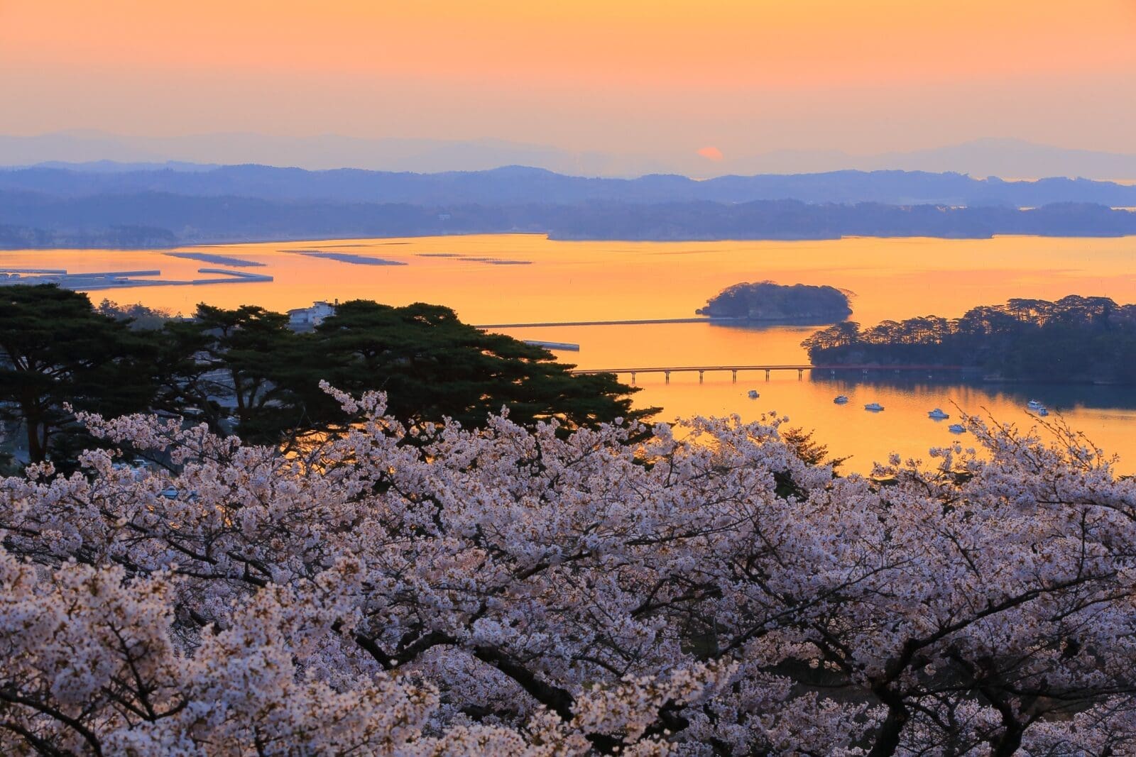 隨後我們將造訪西行戻之松公園,這裡位於高地,可以遠眺松島灣的美景。260株櫻花樹在海水和松樹的映襯下,呈現出絕美的對比,讓人心曠神怡