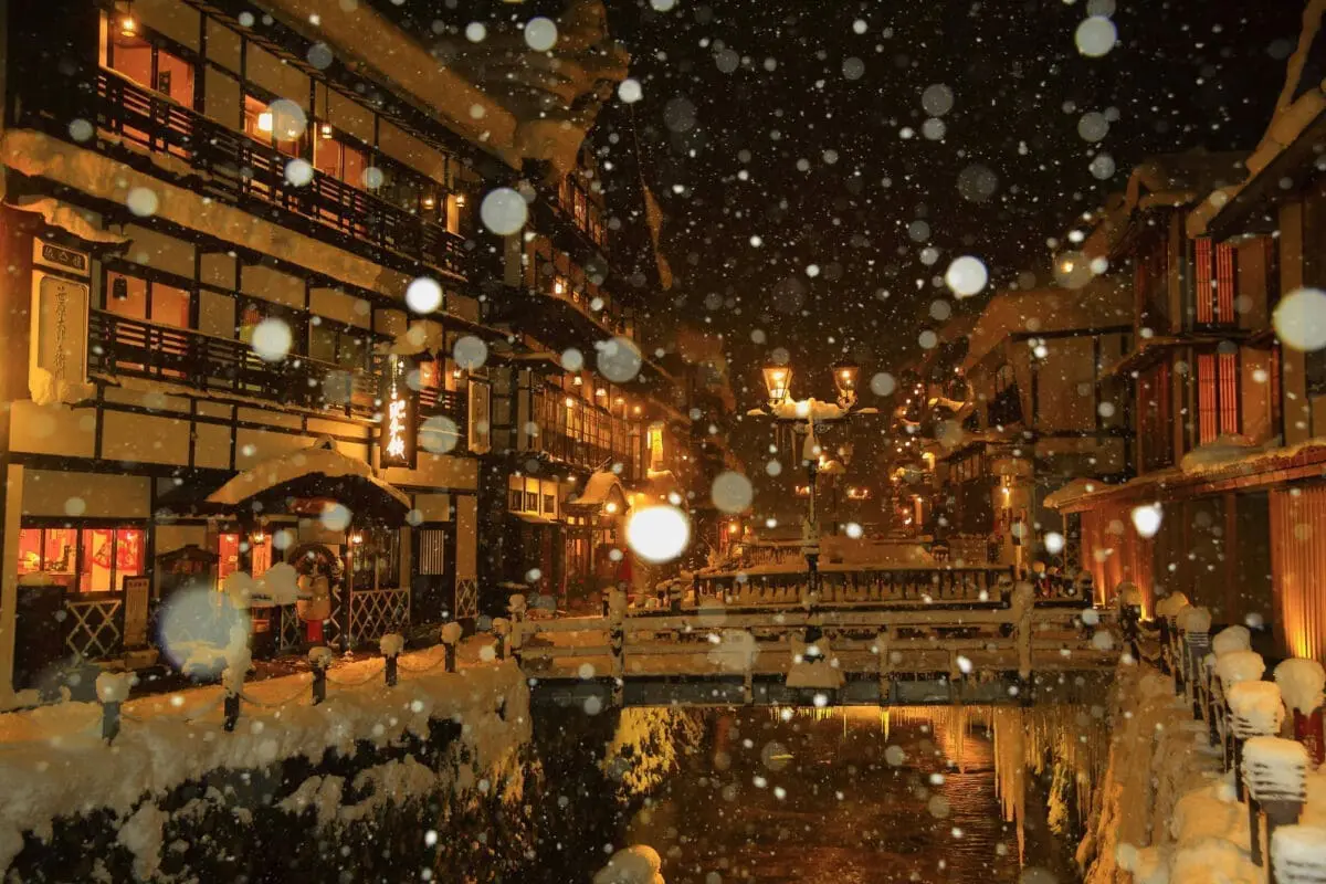 【銀山溫泉】是一個擁有濃厚懷舊氛圍的小鎮,這裡被譽為《千與千尋》動畫中世界的真實版。整個小鎮沿著銀山川而建,街道兩旁是具有日式風格的木造建築。當煤油燈亮起,小鎮充滿了復古的浪漫情調,仿佛穿越到了過去的時光。尤其是在冬天,大雪覆蓋街道,您可以一邊享受露天溫泉,一邊欣賞雪景,這種結合了寒冷與溫暖的極致感受,讓人流連忘返。銀山溫泉不僅是放鬆的好去處,更是感受日本古老溫泉文化的最佳地點。