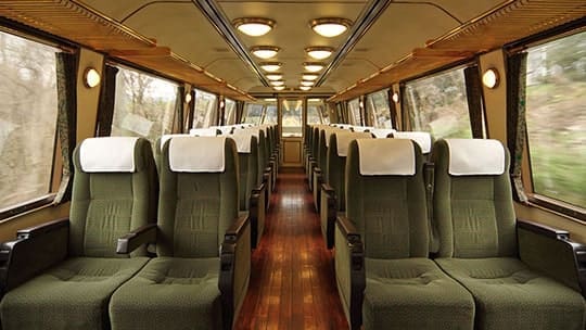 | 由布院之森列車 | 列車內部裝潢豪華,設計精美,從舒適的座椅到溫馨的燈光,每個細節都經過精心設計。 |