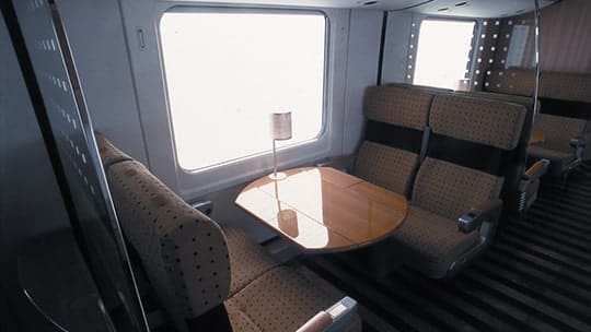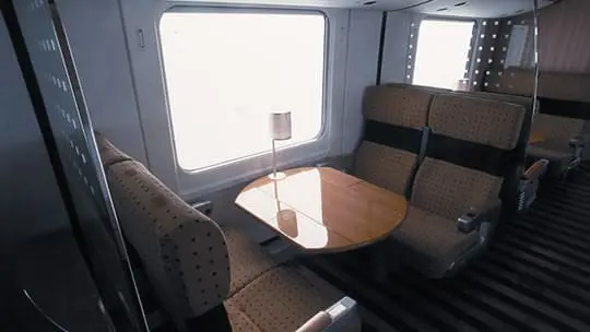 由布院之森列車的外觀採用了獨特的綠色塗裝,象徵著九州豐富的自然資源和生態環境。車廂內部裝潢豪華,主要使用了大量的木材,搭配暖色調的燈光,營造出溫馨舒適的氛圍。列車內設有舒適的座椅,大面積的窗戶讓乘客可以盡情欣賞沿途的美景。除了標準的座位區外,列車還設有觀景休息區、咖啡廳和紀念品販賣區等設施,滿足乘客的各種需求。