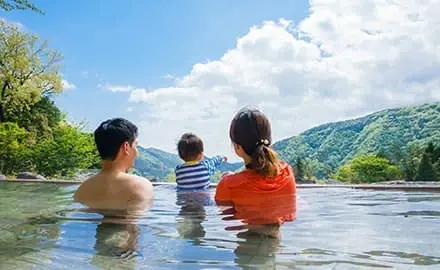 在YUNESSUN,你可以盡情享受各種特別的主題溫泉池,比如紅酒溫泉池和日本酒溫泉池。工作人員會不定期地把真的咖啡和紅酒倒入池中,和你互動。另外,還有適合孩子們的戶外溜滑梯和流水池。特殊節日時,他們會舉辦期間限定活動,比如在萬聖節時,在戶外溫泉中放入大量南瓜,讓你在享受溫泉的同時感受到節日氛圍,相當有趣。