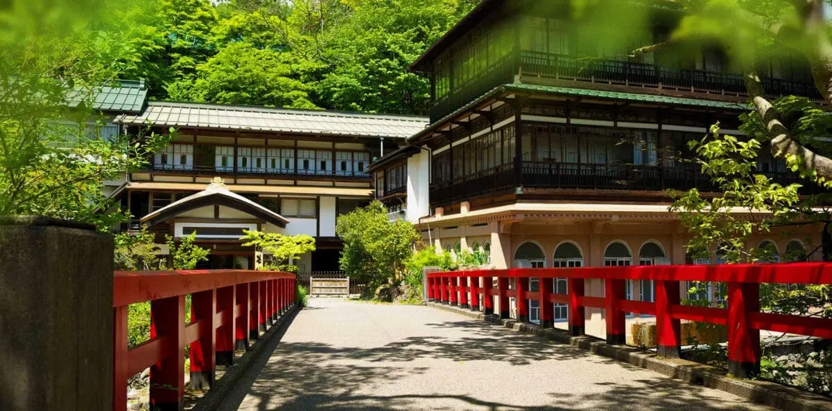 積善館位於四萬溫泉,是日本現存最古老的溫泉旅館之一,其紅色木橋與和風建築,被視為《神隱少女》場景的靈感來源。旅館內的木造長廊與復古房間保留大正風情。無論是在露天風呂泡湯賞景,或穿越紅橋感受懷舊氛圍,這裡都是一場時光旅行的絕佳起點,適合情侶與文青一遊。
