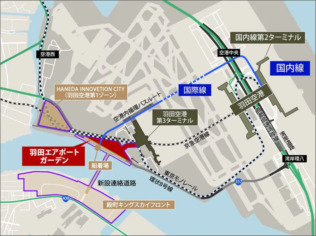 與京濱電鐵機場線/東京單軌電車「羽田機場第3航站樓站」直接相連,步行1分鐘 從羽田機場第3航站樓2F直接連接。
