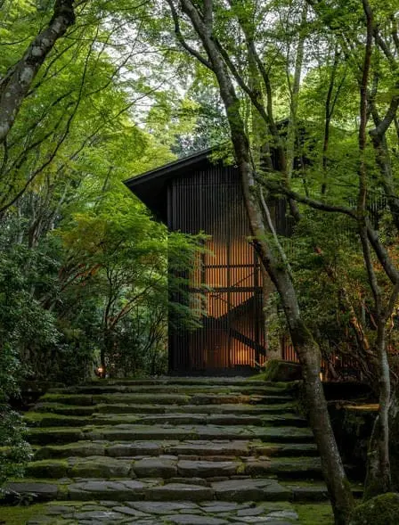 安縵京都隱于森林深處,是一個可以享受私密園林景觀的酒店。酒店毗鄰京都金閣寺及其他16處聯合國教科文組織世界遺產,同時提供明亮的套房與庭閣,並設有安曼水療和式熱湯溫泉,以療愈身心為主題。
