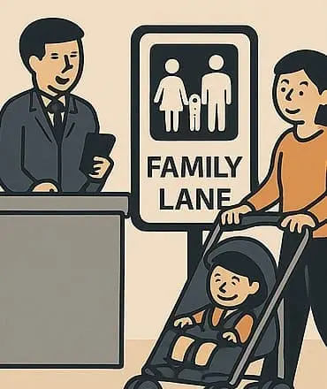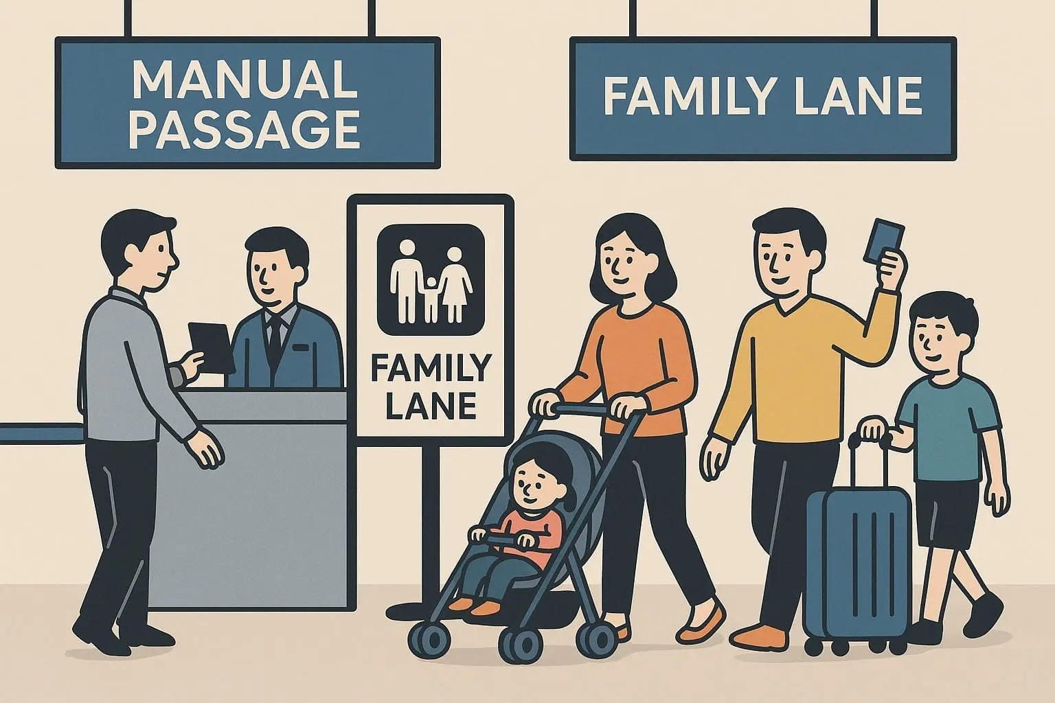 所有12歲以下兒童必須走人工通道,但別擔心!只要使用【Family Lane】,比一般人工通關快上50%,是爸媽們的救星!