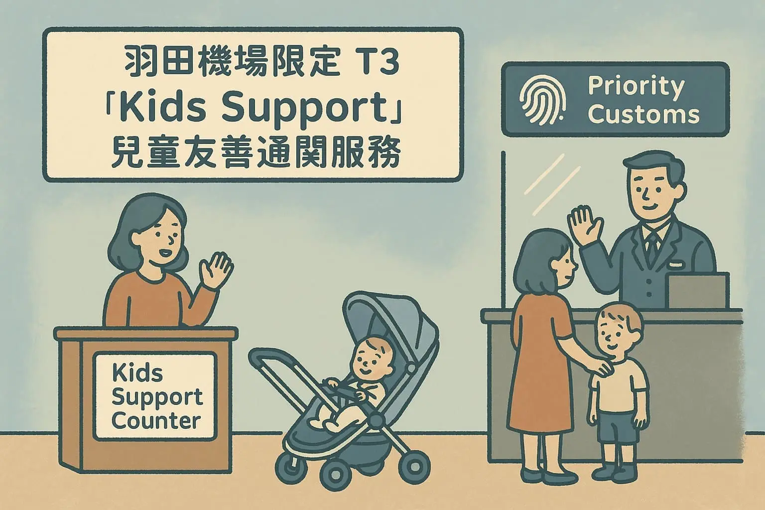若你從羽田機場第3航廈(T3)入境,恭喜你!可以使用更貼心的「兒童支援服務」,特別適合帶嬰兒或幼童的家庭。
