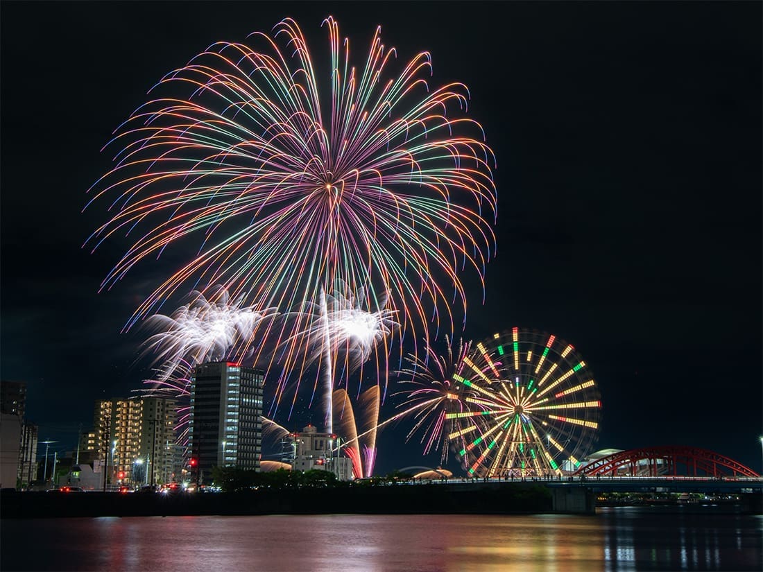 幕張海邊的開闊空間,讓煙火與海面相互映襯,畫面乾淨清晰,是攝影愛好者的天堂。