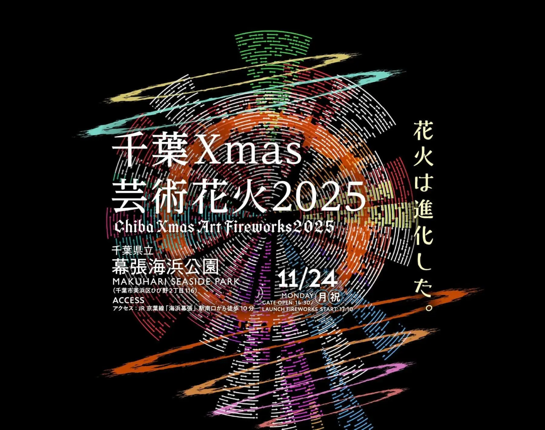 一年一度的【千葉Xmas藝術花火】將於 2025年11月24日 盛大登場!冬夜的海風、與音樂同步綻放的煙火、閃爍的燈光,讓你在幕張海邊度過一個最難忘的聖誕夜✨