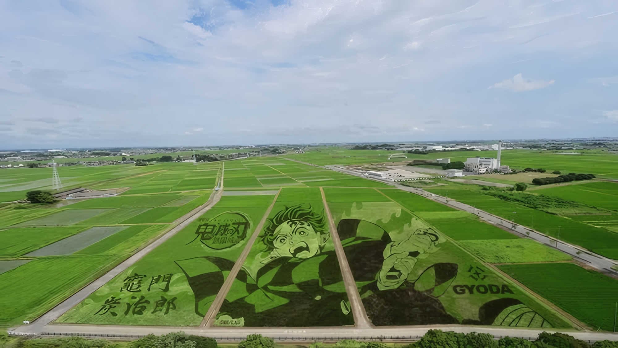 鬼滅之刃稻田藝術位於埼玉縣行田市,每年夏季展出以熱門動漫《鬼滅之刃》為主題的巨型稻田畫。以不同品種與顏色的稻米精心種植,描繪出主角「炭治郎」等角色的生動畫像,栩栩如生,氣勢磅礴。最佳觀賞期為7月中旬至10月中旬,可從高處眺望整體圖案,令人驚嘆於農藝與創意的結合,是動漫迷與攝影愛好者不容錯過的打卡勝地。