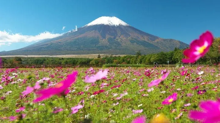 位於河口湖湖畔的大石公園,是眺望富士山與花海的絕佳地點。春夏可欣賞薰衣草與季節花卉,秋天則有紅葉美景。園內步道平緩,適合拍照與賞景,是富士五湖地區最受歡迎的拍照打卡景點之一。
