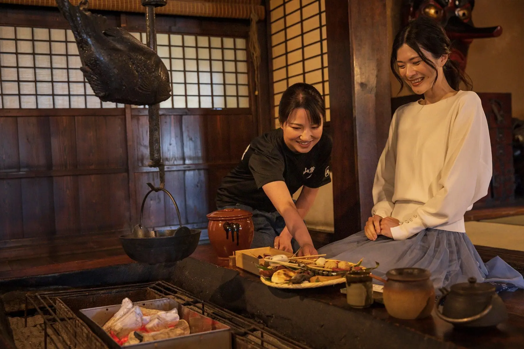 山麓園是一家位於富士山腳、充滿古風的圍爐裡鄉土料理餐廳。用餐區為茅草屋造型,氣氛濃厚又溫馨,主打炭火現烤的岩魚、雞肉與時令蔬菜,旅客可親自動手燒烤,體驗傳統日式料理的樂趣。搭配自製醬料與米飯,更添原始香氣。這裡不僅是美食體驗,也是深入當地生活文化的重要環節,非常適合家庭與團體共餐。