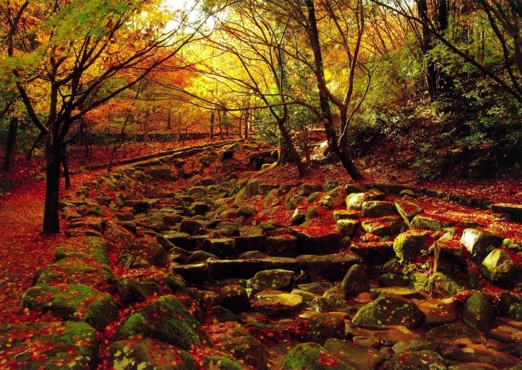 石谷峽是廣島縣內最受歡迎的健行景點之一,擁有長達7公里的溪谷步道,非常適合熱愛健行的旅客。秋天來這裡,你可以一邊健行,一邊欣賞兩旁被楓葉染紅的山景,身心都能感受到無比的放鬆與愜意。
