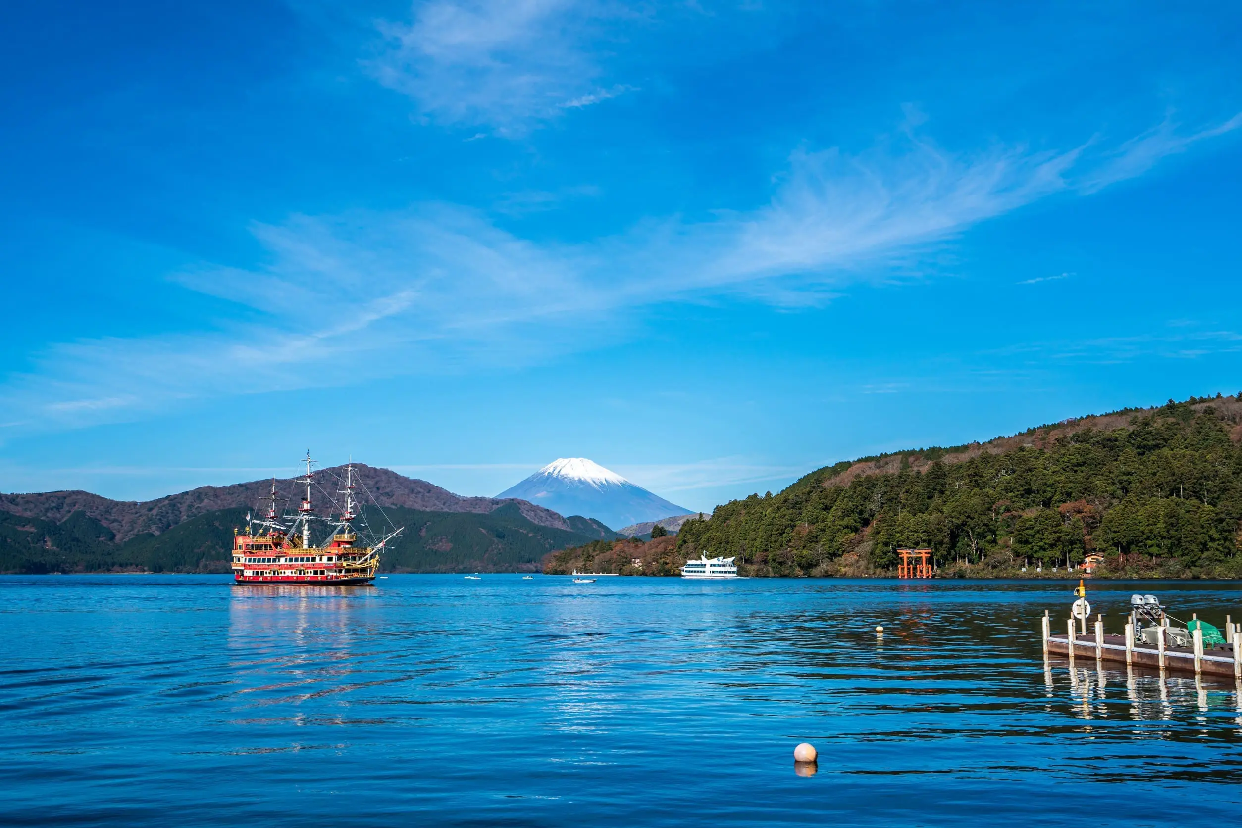 搭乘觀光船航行於湖面,可遠眺富士山與箱根山,湖光山色相映,風景宜人。沿途經過箱根神社與港口,是體驗箱根自然美景與悠閒氛圍的絕佳方式。
