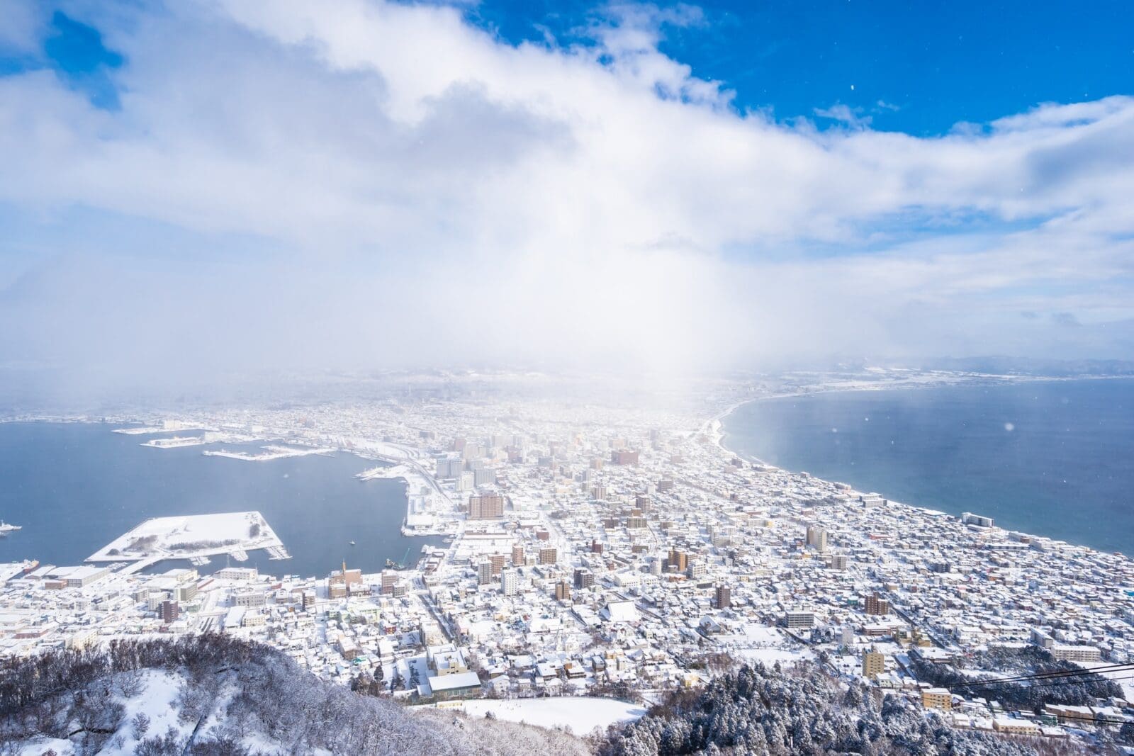 函館山的夜景被譽為「世界三大夜景」之一,冬季的函館更是靜謐而迷人。搭纜車登山,俯瞰城市燈光與海灣景色,浪漫得讓人無法忘懷。