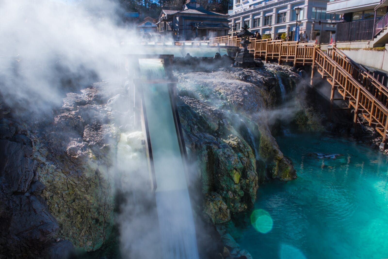 草津溫泉是日本著名的溫泉勝地,而湯畑作為草津的地標更是吸引了無數旅人。冬天來到這裡,可以一邊欣賞溫泉蒸汽,一邊品嚐當地特色的溫泉包子,享受暖心又暖胃的旅程。此外,冬季夜晚的燈光秀更讓湯畑增添了幾分浪漫氣息。