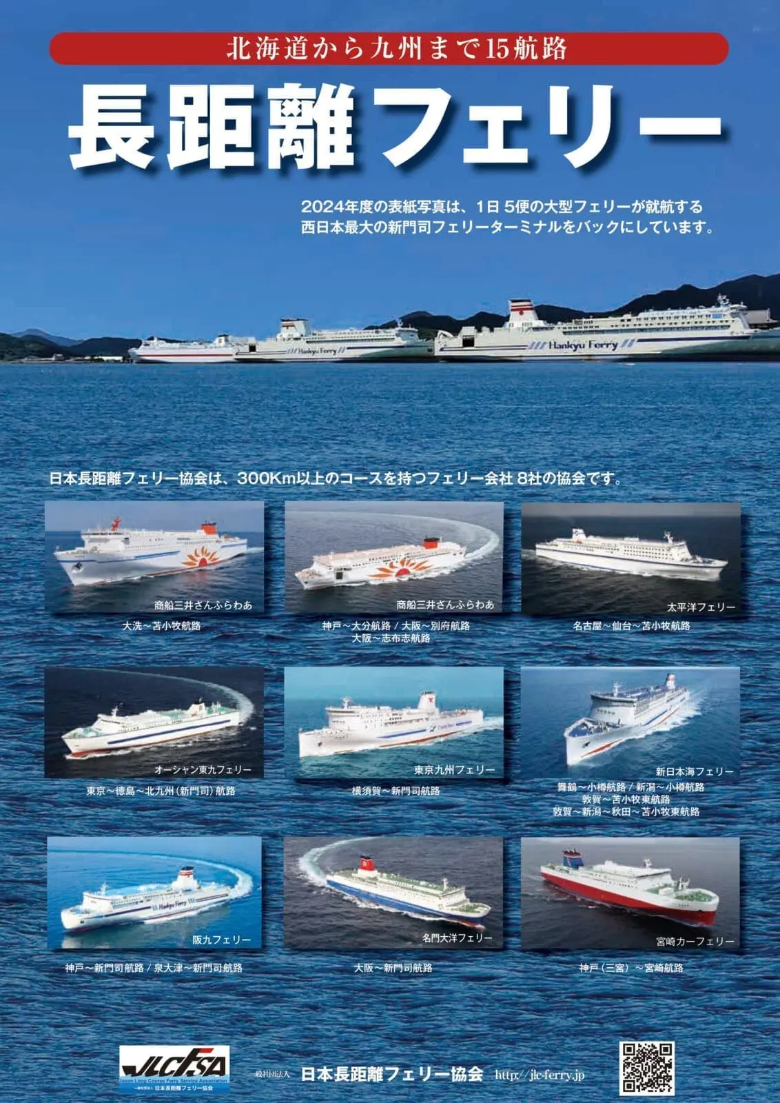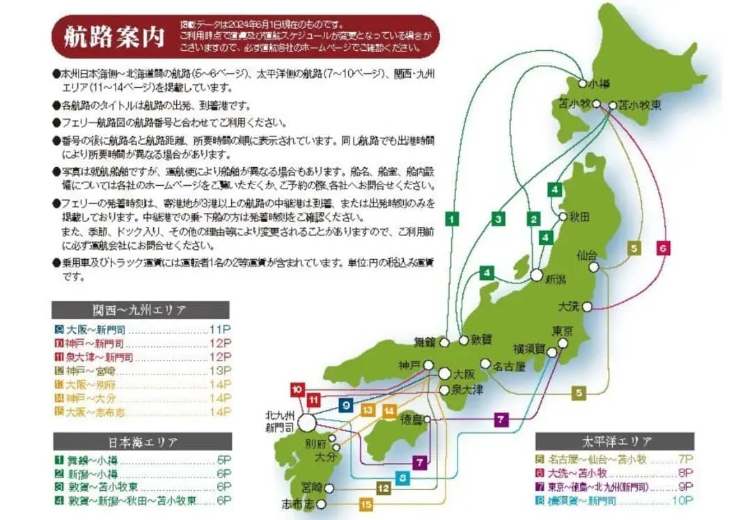 日本長距離渡輪協會(JLC Ferry)匯總了15條航線,涵蓋日本主要海域,讓旅客輕鬆連接各地。以下是主要航線和目的地: