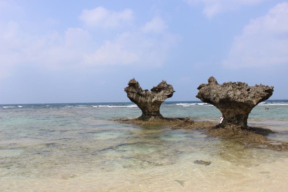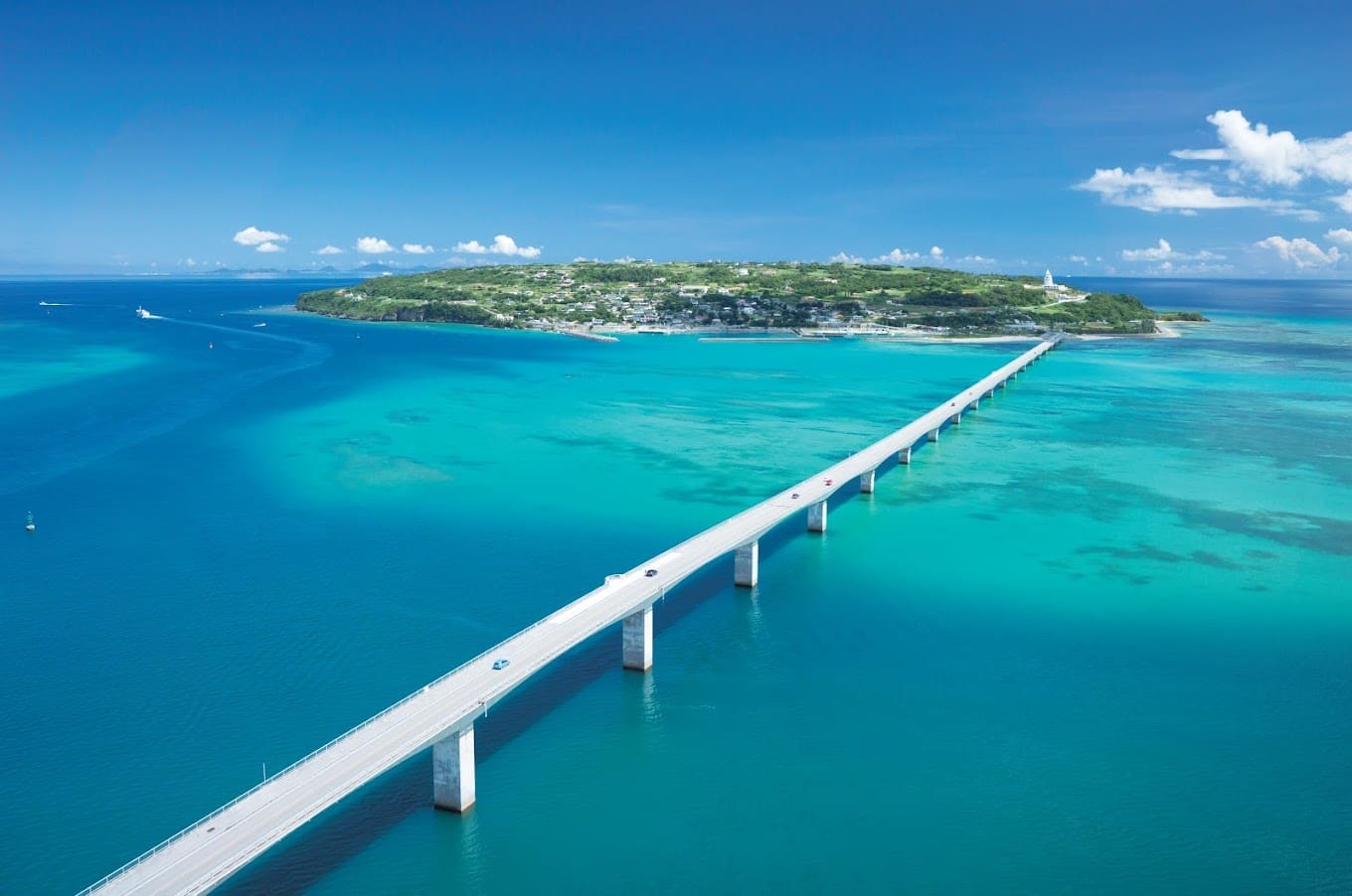 古宇利大橋全長近2公里,橫跨碧藍海面連接本島與古宇利島,被譽為「沖繩最浪漫的海上道路」。古宇利島擁有清澈海水與潔白沙灘,是傳說中沖繩版亞當與夏娃的起源地,也是情侶與攝影愛好者的夢幻秘境。