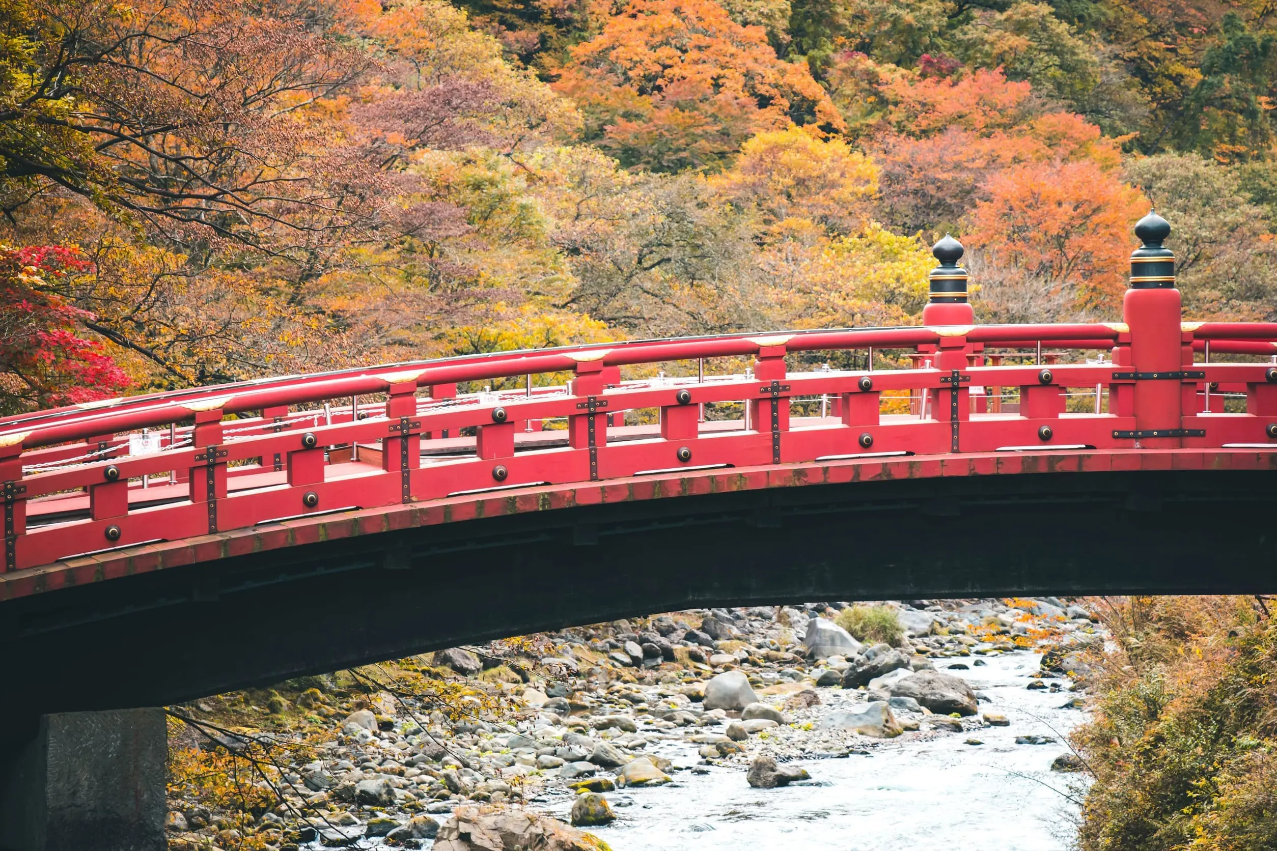 橫跨大谷川的神橋,被譽為日本三大奇橋之一,是通往日光東照宮的入口。朱紅色木橋映襯著溪水與楓紅,構成優雅畫面。傳說為神靈搭橋之地,因此被視為神聖象徵。現今僅特定時節開放步行,是日光地區的攝影熱點與精神地標。