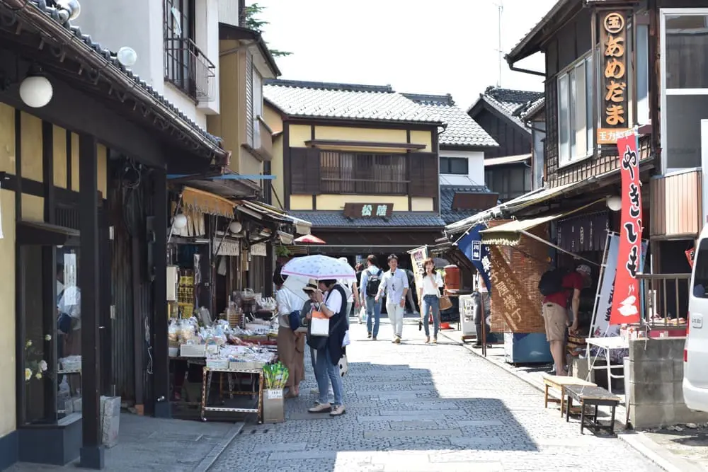又稱「小江戶」,保留大量江戶時代黑瓦白牆的藏造建築。街區販售傳統點心與工藝品,適合慢遊拍照,是感受復古日式風情的理想地點。