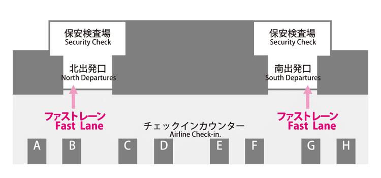 快速通關通道位於關西國際機場第1航站樓的國際線北出發口和南出發口。北側的快速通道運營時間為早上6:30到晚上10:00,而南側的運營時間為早上7:00到晚上8:00。這樣的安排幾乎覆蓋了全天的大部分航班起飛時間,確保會員能夠方便地使用這項服務。