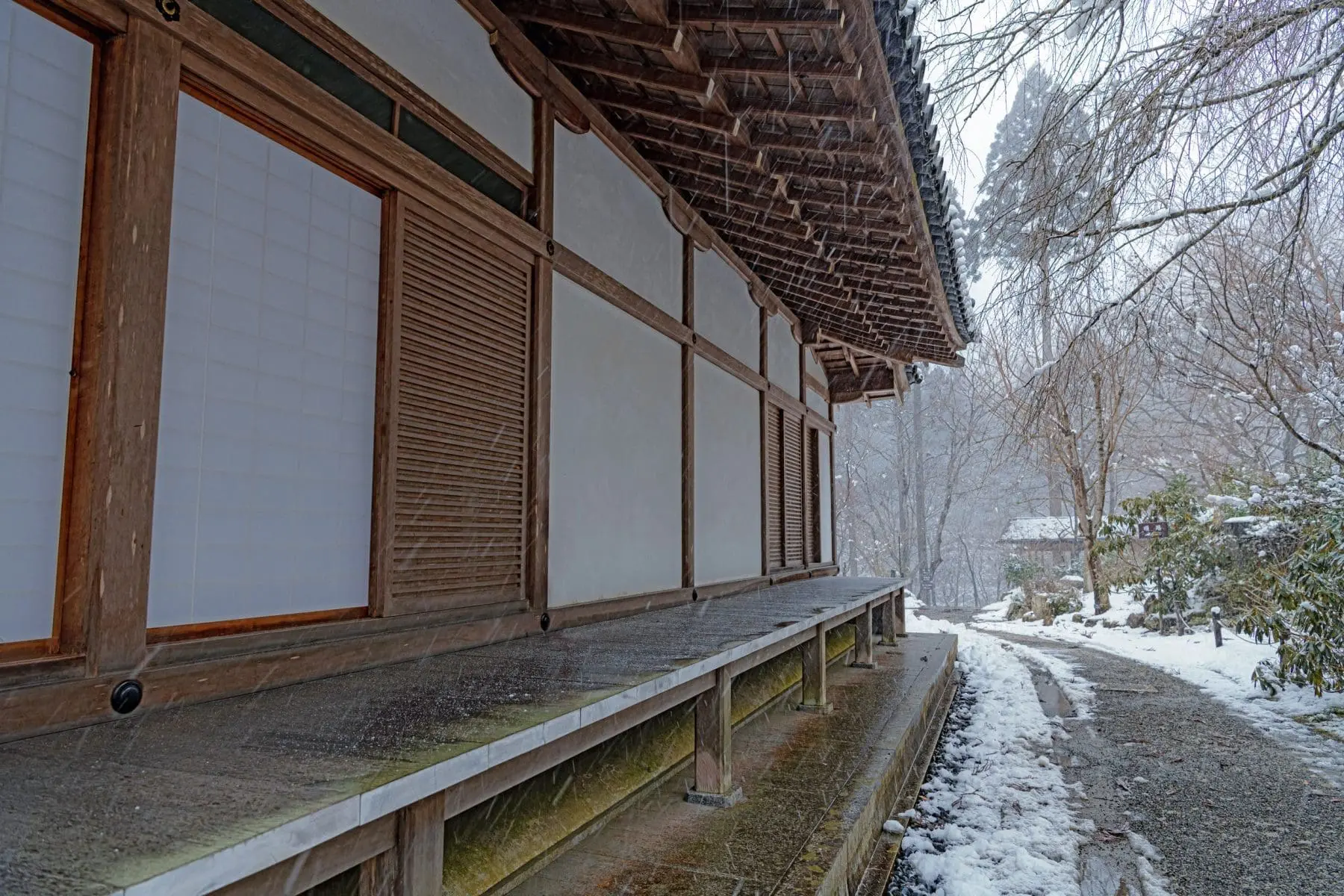 當白雪覆蓋庭園,整座寺院彷彿被時間凝結。