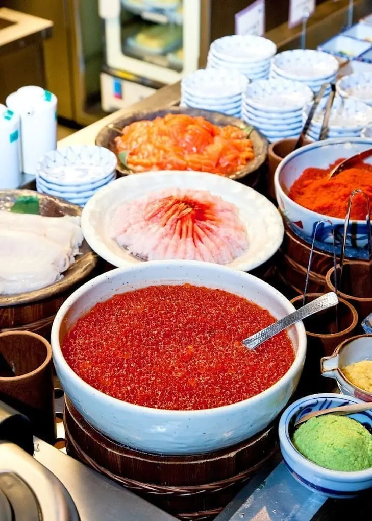 早餐中最讓人驚喜的莫過於鮭魚卵和肥金槍魚碎,而且不限量供應!新鮮的鮭魚卵搭配熱騰騰的白米飯,每一口都充滿海洋的鮮味,讓人回味無窮。除了鮭魚卵外,酒店還提供種類豐富的生魚片,新鮮度與品質都讓人滿意。