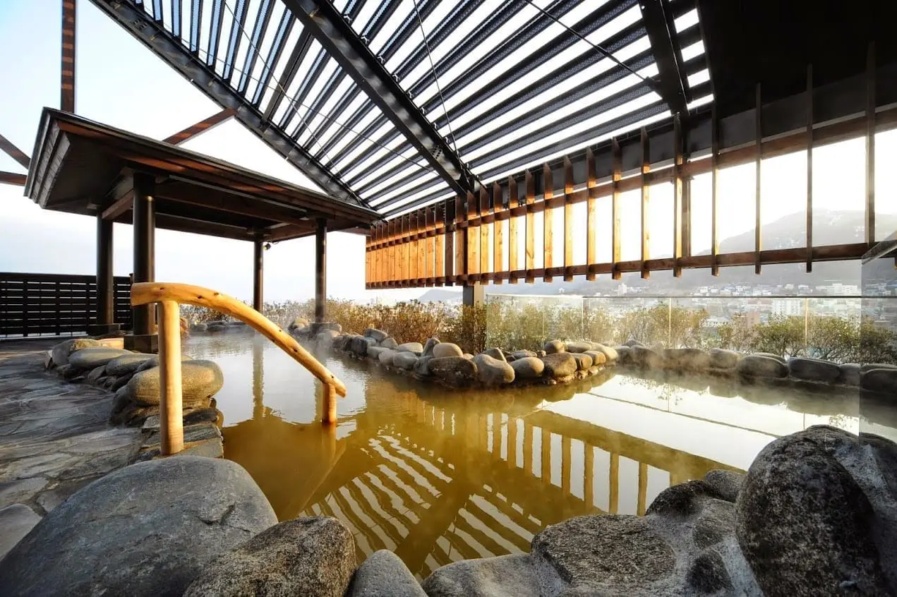 La Vista函館灣酒店的溫泉設施設在頂樓,是另一個讓人流連忘返的特色。入住酒店後,可以一邊享受溫暖的溫泉,一邊欣賞函館的壯麗景色,特別是夜晚時分,整個城市燈光點點,讓人沉浸在夢幻般的氛圍中。