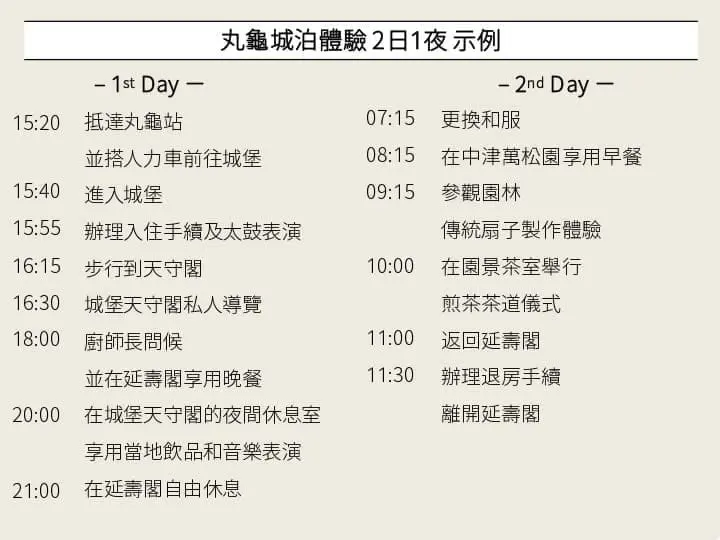 丸龜城泊兩天一夜城主行程