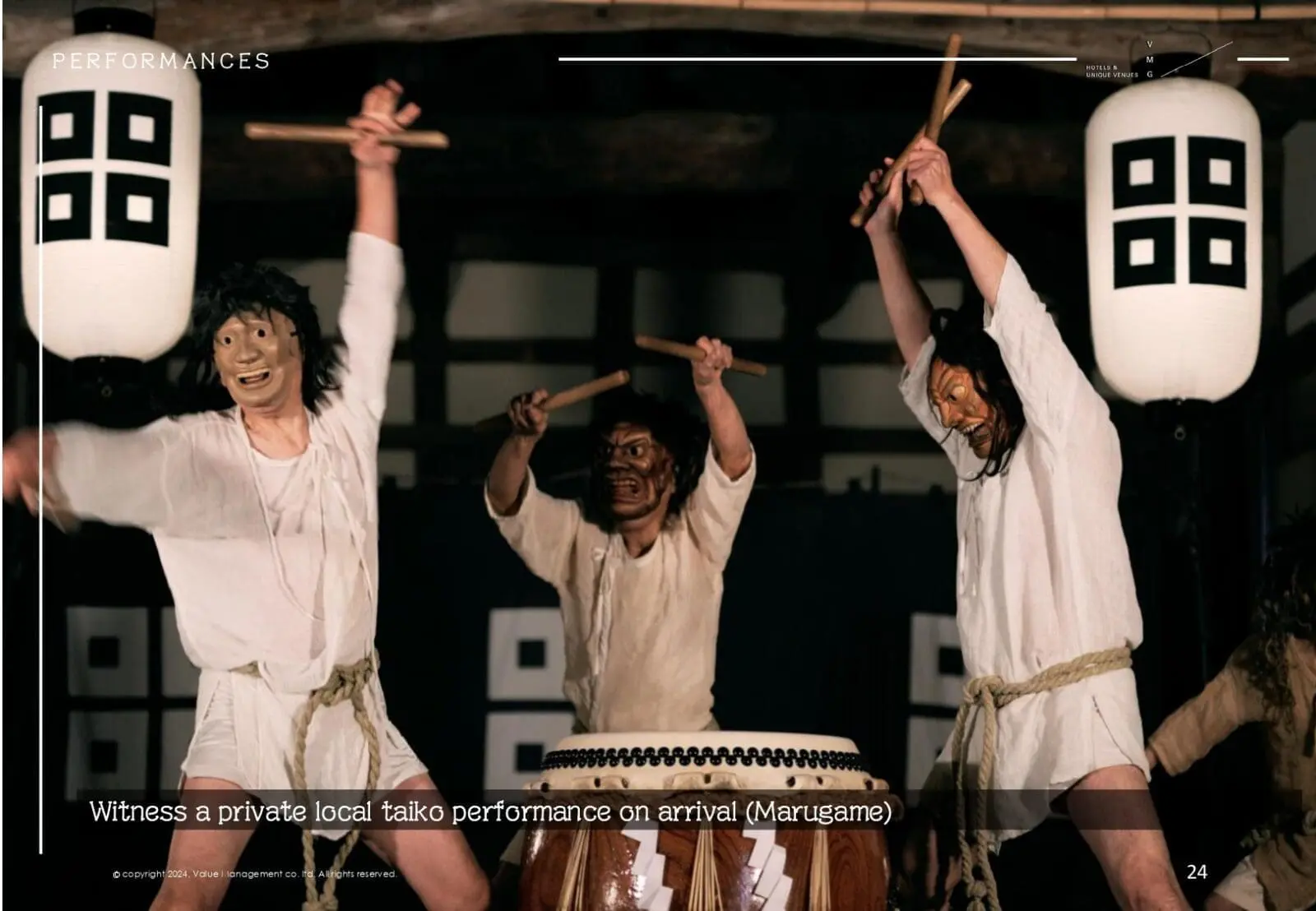 - 文化活動:私密的當地太鼓表演、和樂器演奏(琴和尺八)等,營造出獨特的氛圍。