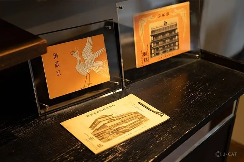 鮒鶴京都鴨川リゾート並非一般的料理旅館,建築的每個角落都充滿了歷史細節,例如入口處的「鞍馬石踏石」和透雕的欄間,都是昭和時期工匠精心打造的藝術品。此外,旅館內保留了不少珍貴的歷史文物和舊照片,記錄了旅館從創建至今的發展過程。這座建築就像一本活的歷史書,展示了京都自明治以來的建築演變與文化傳承。