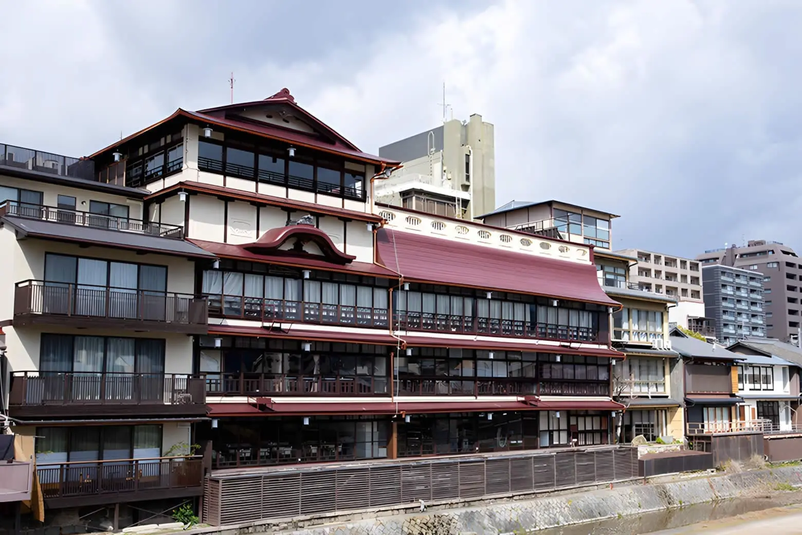 在最上層,鮒鶴京都鴨川リゾート設有一個俯瞰鴨川與東山的露台,這個露台是旅館設計中特別的一環,讓住客能從高處觀賞京都的自然風光。從露台望去,您可以看到象徵京都的清水寺、八坂塔等著名地標,並能欣賞到四季分明的自然風光。春天的櫻花和秋天的紅葉交替,讓這個露台成為京都市區少有的絕佳觀景點。這裡也是攝影愛好者的最愛,可以捕捉到京都最具代表性的景致。