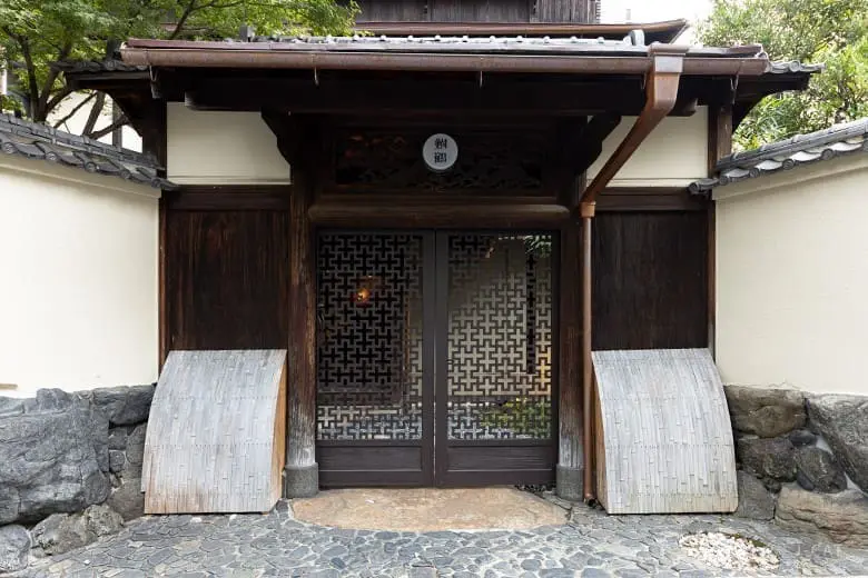 行程從入口開始,您將由專人帶領,體驗文化財建築的特別之處。首先進入的是舊門,這裡保存著當時的外門,並有一座雕刻精美的門廊。旅館的門廊採用大量的鞍馬石製成,並有精緻的木雕欄間,欄間上飾有鶴的雕刻,象徵長壽與吉祥。這種細節在昭和時期的建築中十分少見,是手工匠人們的傑作。